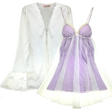 奢华蕾丝网纱透视透明玻璃纱露乳诱惑刺绣绣花睡裙睡衣睡袍浴袍女