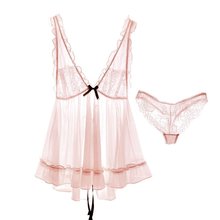 爱米丽 全透明性感蝴蝶结系带睡裙 极度诱惑情趣内衣套装