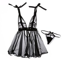 小胸性感深V系脖透视黑色睫毛蕾丝睡裙 极度诱惑情趣睡衣内衣