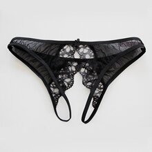 黑色蕾丝极度诱惑大开档性感骚丁字裤 女士免脱情趣透视内裤