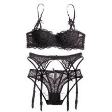 热销极度诱惑性感蕾丝半杯套装 文胸内裤吊袜带 高端搭配三件套