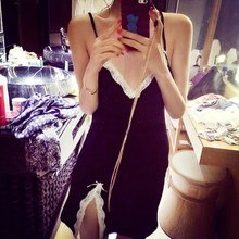 限时抢购法国高端黑色吊带开叉蕾丝性感睡衣 半透明极度诱惑睡裙