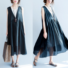 2017新款大码宽松孕妇裙 韩版V领无袖孕妇连衣裙 亚麻夏季长裙夏
