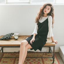 春款黑色显瘦减龄背带裤长裤 宽松大码薄款休闲阔腿九分裤哈伦裤