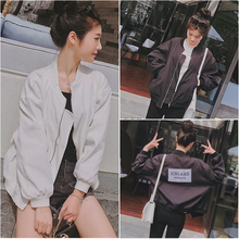 2017春秋百搭纯色棒球服修身显瘦FB风贴布字母休闲外套女学生上衣