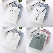 2017春秋打底长袖衬衫POLO领甜美森女日系文艺刺绣花女学生白衬衣