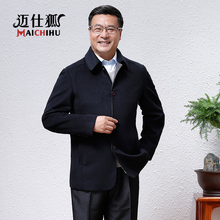 秋冬装男装中年男士毛呢大衣中老年加厚中长款羊毛呢子外套爸爸装