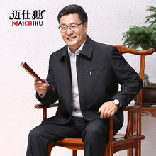 中老年中山装男套装秋装外套老年人翻领中山服羊毛呢爷爷装加厚