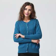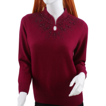 绒煜鄂尔多斯市2016新款秋冬女式羊绒衫 旗袍领妈妈装带珠针织衫
