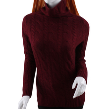 鄂尔多斯市羊绒衫 女式枣红色针织衫修身 高领新款麻花毛衣RY1863