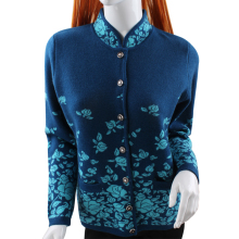 鄂尔多斯市羊绒衫 女式带兜开衫 娃娃领中老年妈妈装 外套 针织衫