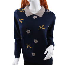 绒煜新款鄂尔多斯市女士羊绒衫 翻领气质女装 针织衫带花RY1662