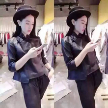 欧洲站2017秋季新款黑色复古时尚套装欧美休闲大码个性两件套女潮