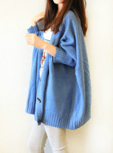 2017春季新款韩版毛衣宽松牛角扣大码针织衫开衫中长款蝙蝠衫外套