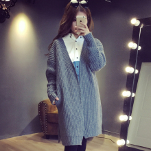 17春季新款韩版超长款粗线棒针织毛衣外套韩国加厚宽松显瘦开衫女