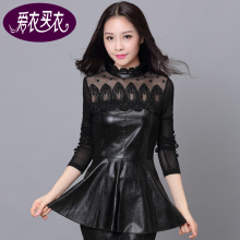 爱衣买衣 2017春装新款皮裙包臀连衣裙女长袖秋a字裙打底裙女6123