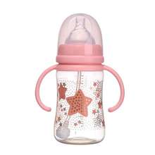 日康宽口径婴儿奶瓶带吸管手柄硅胶防摔宝宝宽口奶嘴PP奶瓶防胀气