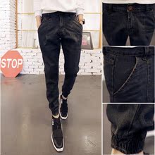 春季黑色收腿9分牛仔裤男士修身束脚裤韩版九分裤小脚哈伦裤男裤
