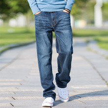欧版阔腿裤男士宽松直筒牛仔裤 男裤滑板裤有大码Hiphop嘻哈裤子