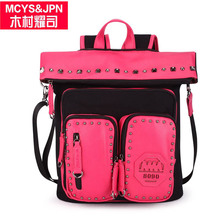 木村耀司韩版双肩包帆布旅行包时尚潮流多功能背包个性街头铆钉包