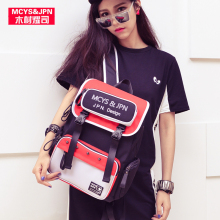 木村耀司日韩双肩包女生时尚潮流背包小清新帆布包百搭印花书包男