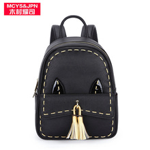 2016新款女士双肩包潮可爱pu包包复古背包猫耳流苏书包小旅行街包