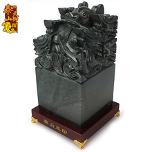 天御阁泰山玉九龙玉玺印章大摆件墨玉原石篆刻石料办公室装饰品