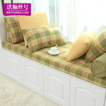 定做高密度海绵飘窗垫阳台坐垫窗台垫沙发垫子格子亚麻布套定制