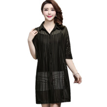 夏季防晒衣女中长款雪纺开衫七分袖宽松大码外搭披肩薄外套妈妈装