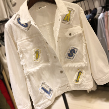 韩版大码女装胖妹妹200斤 贴布刺绣bf风牛仔外套女时尚宽松牛仔衣