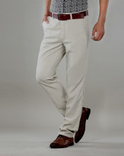 男士休闲裤春夏薄款直筒裤浅米黄弹力棉氨纶商务男裤子暗条纹