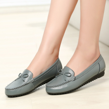 正品牌女单鞋春秋季浅口皮鞋女士真皮平底妈妈鞋青中年30 40 50岁