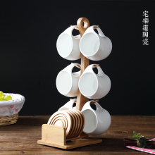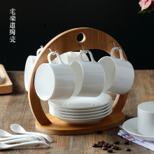创意带木托盘咖啡具套装 英式下午茶茶具欧式陶瓷简约咖啡杯套装