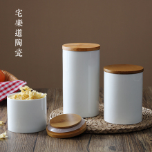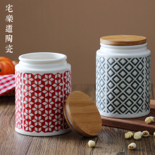 日式和风竹盖陶瓷密封罐收纳储物罐子厨房食品茶咖啡杂粮调味料罐