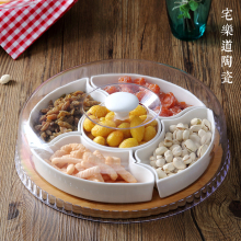 圆形简约陶瓷干果盘带盖子分格零食糖果新年分格瓜子坚果盒水果盘