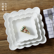 宅乐道方型浮雕欧式蕾丝蛋糕点心盘创意陶瓷平盘西餐水果盘餐具碟