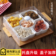 简约带盖干果盘盖子陶瓷零食糖果新年分格瓜子坚果盒水果盘送礼品