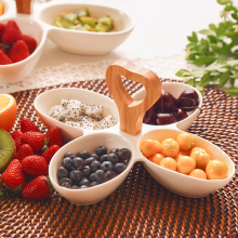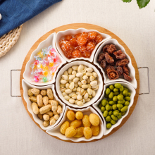 创意陶瓷分格水果盘 竹木把家用干果盘 点心坚果零食盘多格配菜盒