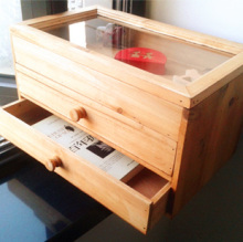 果果家 2格1玻璃抽屉 笔筒 桌面收纳盒 小木盒 实木不涂漆 zakka