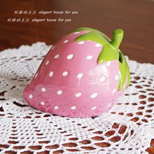 手绘陶瓷 摆设 甜美风格 草莓钱罐 两色可选