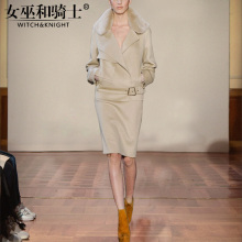 2016冬装新款欧美高端仿兔毛皮草大衣中长款外套皮长裤套装女潮
