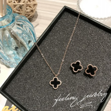 超值 现货 经典简约气质四叶花黑白天然双面贝母锁骨链短项链饰品