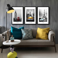 巴黎伦敦纽约黑白现代复古装饰画客厅沙发背景墙画壁画三联画挂画