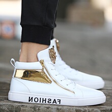 春季男鞋子白色高帮鞋男韩版潮流男士板鞋百搭透气个性潮鞋街舞鞋