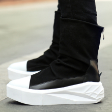 欧洲站春夏季新品男士高帮鞋内增高板鞋真皮黑白色休闲鞋街舞潮鞋
