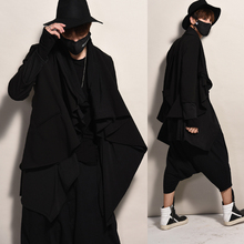 秋冬男装暗黑系不规则中长款风衣夜场演出潮流潮男无扣宽松外套男