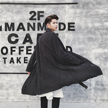 日系原宿暗黑男装休闲开衫宽松长款披风飘逸英伦男士长袖春秋外套