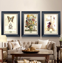 盛迪 美式客厅装饰画餐厅挂画沙发背景墙壁画卧室欧式三联有框画