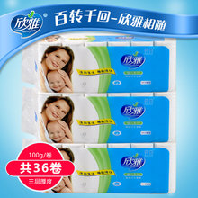 欣雅卷纸卫生纸3层100g*36卷 3提装7.2斤原生木浆纸巾【包邮】