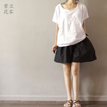 民族风文艺显瘦松紧腰肌理棉麻短裤女夏季高腰宽松大码阔腿裙裤